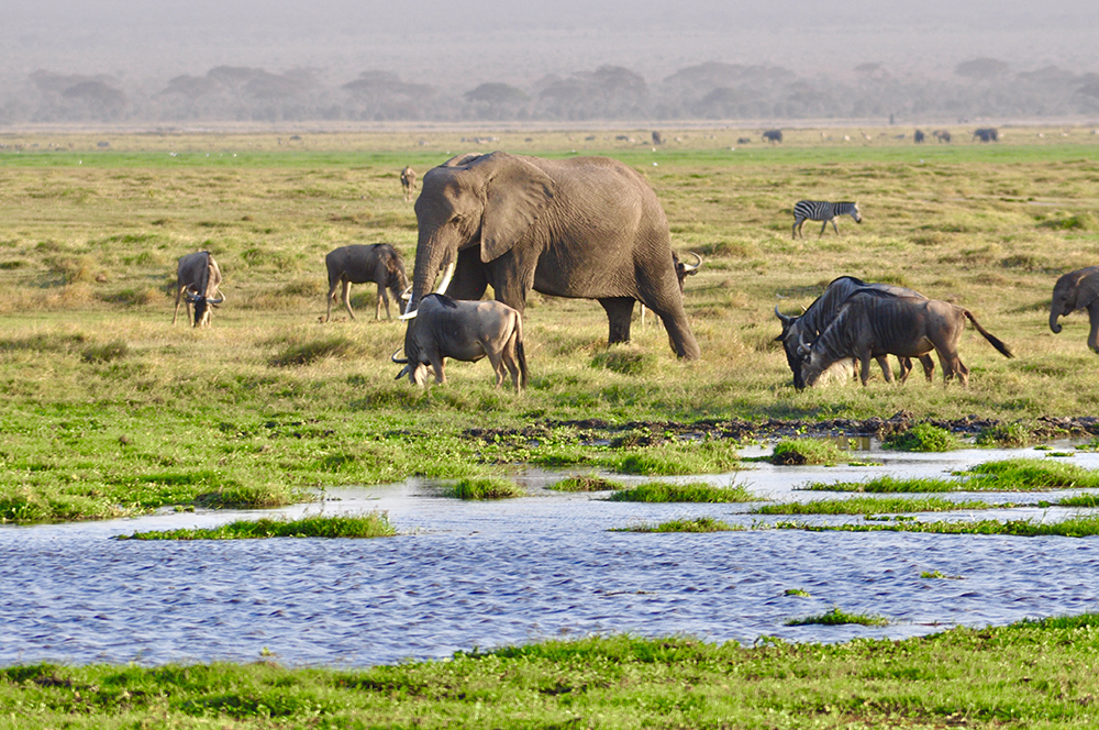 肯尼亞東南部,與坦桑尼亞接壤的安博賽利國家公園,距內(nèi)羅畢240公里,因水草豐美而成為野生非洲大象的樂園。