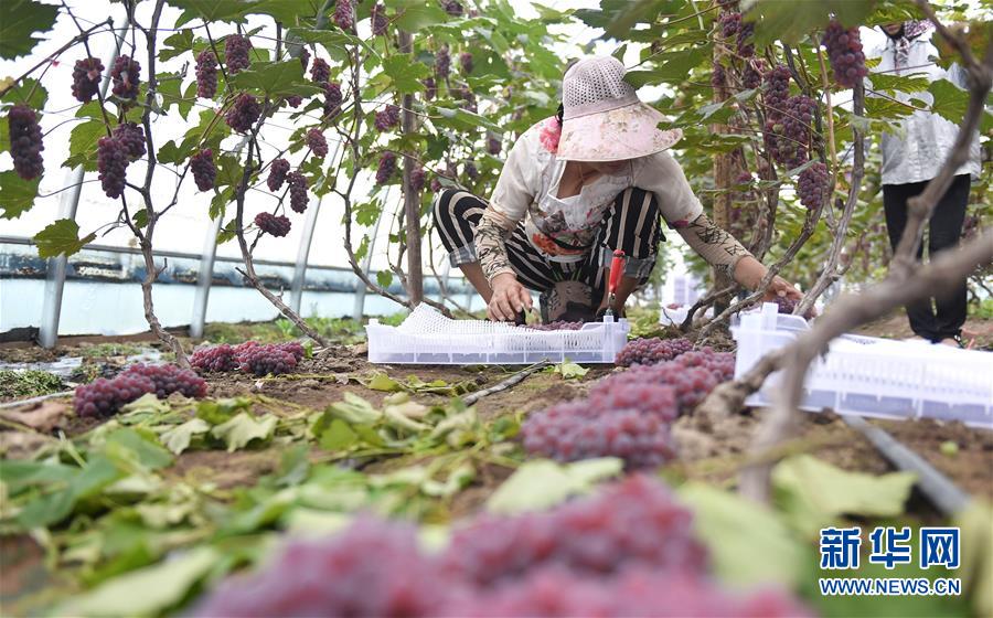 8月13日,在吉林省磐石市煙筒山鎮(zhèn)民主村,村民在葡萄大棚內(nèi)采摘葡萄。時(shí)下,吉林省磐石市煙筒山鎮(zhèn)棚膜葡萄園區(qū)內(nèi)的大棚葡萄進(jìn)入采摘季,農(nóng)民喜獲豐收。近年來,當(dāng)?shù)赝ㄟ^“共創(chuàng)”與“扶持”相結(jié)合的模式大力發(fā)展特色農(nóng)業(yè),建設(shè)葡萄種植大棚300余棟,以此帶動(dòng)村集體經(jīng)濟(jì)發(fā)展,助力農(nóng)民增收致富。新華社記者許暢攝