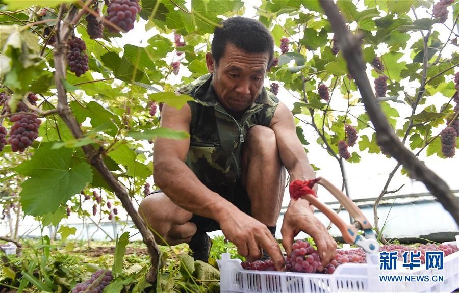 8月13日,在吉林省磐石市煙筒山鎮(zhèn)民主村,村民在葡萄大棚內(nèi)采摘葡萄。時下,吉林省磐石市煙筒山鎮(zhèn)棚膜葡萄園區(qū)內(nèi)的大棚葡萄進入采摘季,農(nóng)民喜獲豐收。近年來,當?shù)赝ㄟ^“共創(chuàng)”與“扶持”相結合的模式大力發(fā)展特色農(nóng)業(yè),建設葡萄種植大棚300余棟,以此帶動村集體經(jīng)濟發(fā)展,助力農(nóng)民增收致富。新華社記者許暢攝