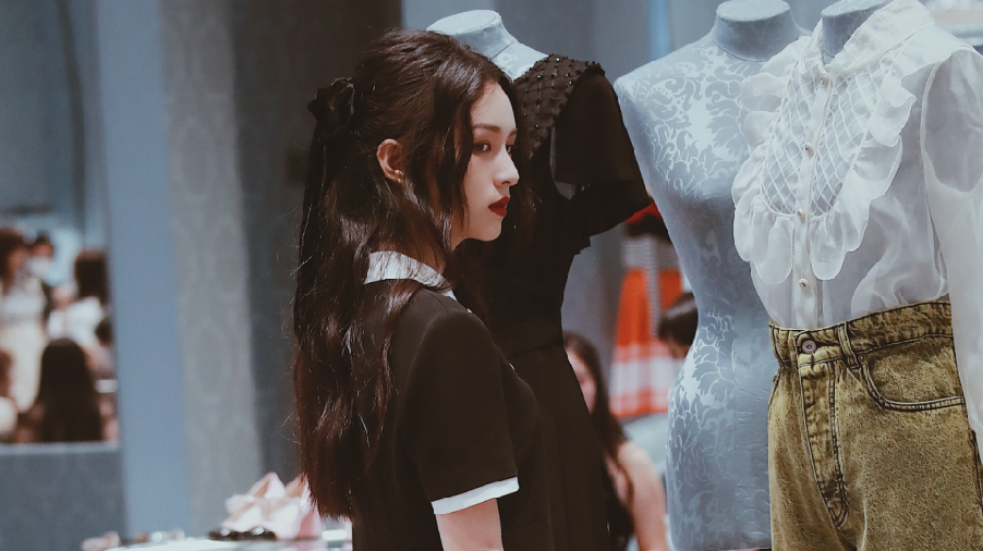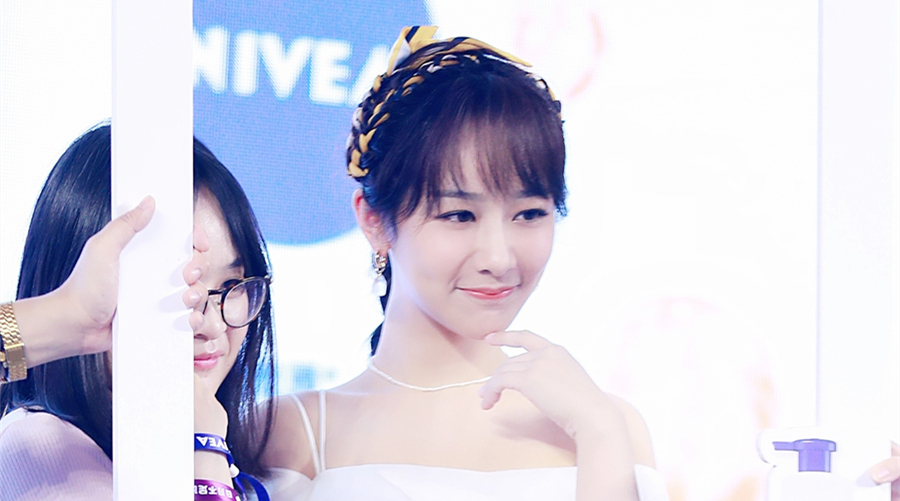 狀態(tài)滿分!關(guān)曉彤斜肩花朵裙秀香肩 對鏡甜笑十分搶鏡