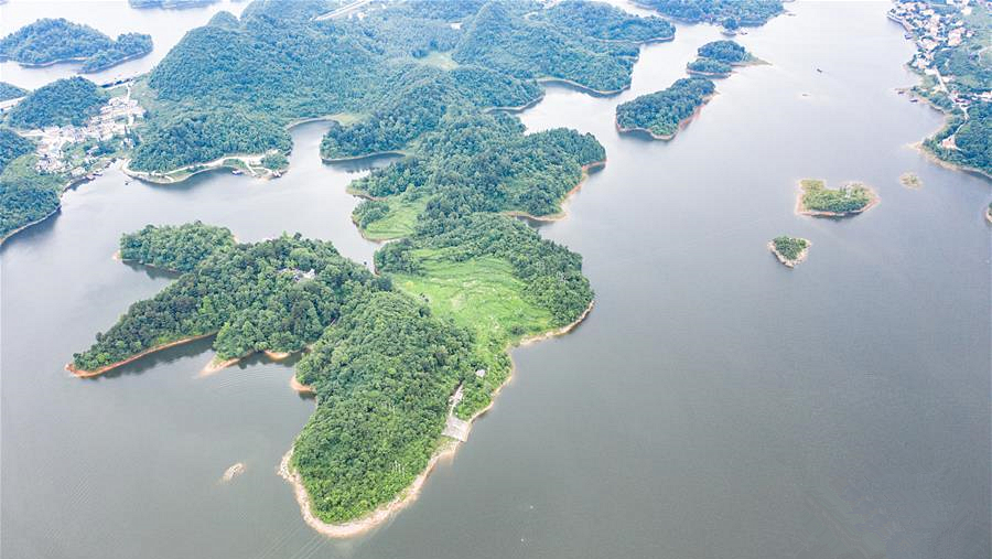 夏至?xí)r節(jié),貴州省清鎮(zhèn)市紅楓湖景區(qū)草木蒼翠,秀麗的湖光山色吸引不少游客前來游玩。
