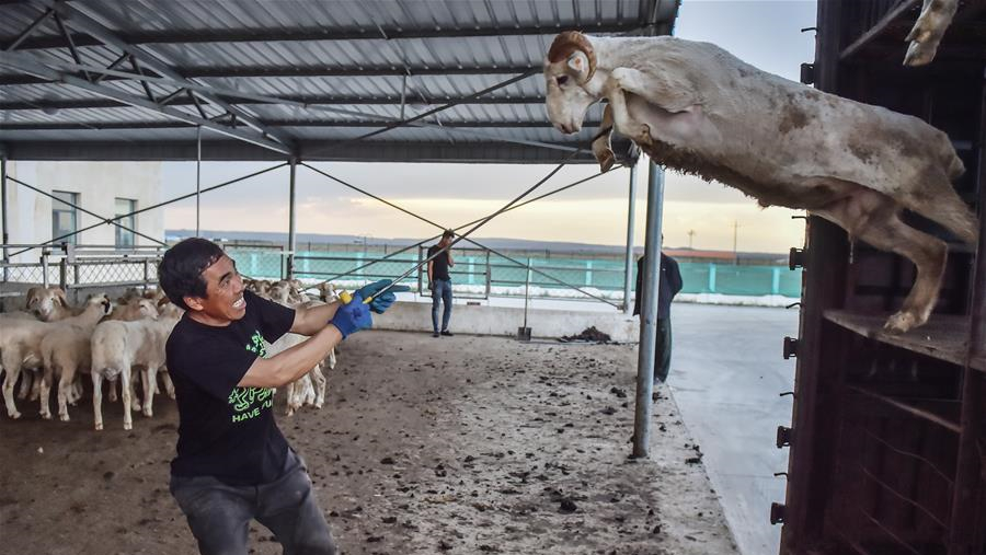 在新疆察布查爾錫伯自治縣一處生態(tài)扶貧林,當(dāng)?shù)刎毨魧⑿藜敉甑臉渲丶椅股螅?月16日攝)。