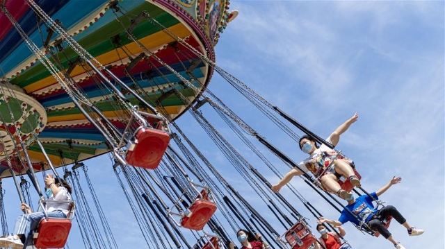 5月17日,在江西省博物館新館,參觀者入館前測量體溫。