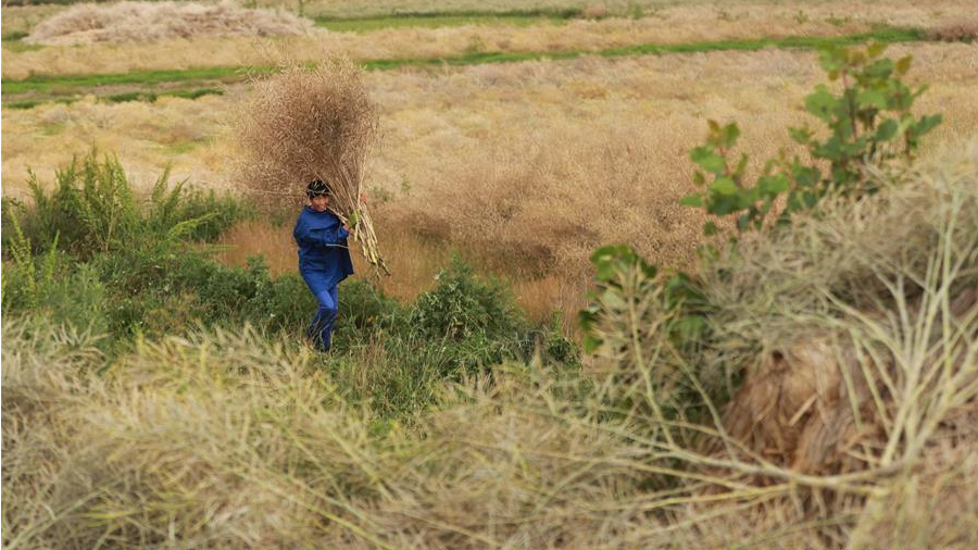 時下,貴州省黔西縣的43萬畝油菜籽進(jìn)入收獲期,村民們忙著在地里收獲油菜籽,田間地頭一片繁忙景象。