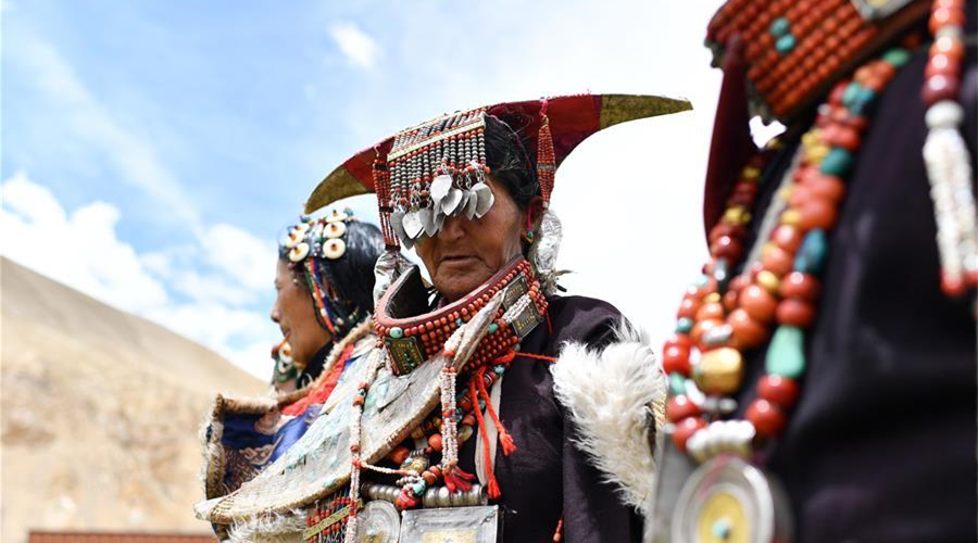 普蘭服飾已有1000多年的歷史,其中最精美、最獨特的是婦女的“孔雀”服飾,一套重達20多公斤,裝飾有黃金、白銀、蜜蠟、珊瑚、綠松石等,堪稱“穿在身上的千年歷史”。
