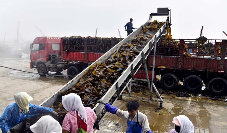 近日,山東省榮成市迎來(lái)海帶收獲季。據(jù)悉,榮成市海帶養(yǎng)殖面積14.5萬(wàn)畝,年產(chǎn)海帶43.3萬(wàn)噸以上。