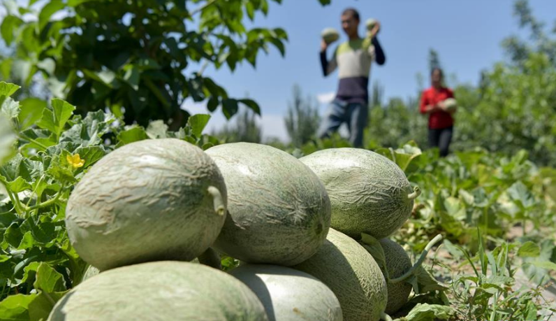 近日,新疆喀什地區(qū)巴楚縣迎來(lái)留香瓜的豐收季,瓜農(nóng)們忙著采摘留香瓜,準(zhǔn)備外運(yùn)銷售。
