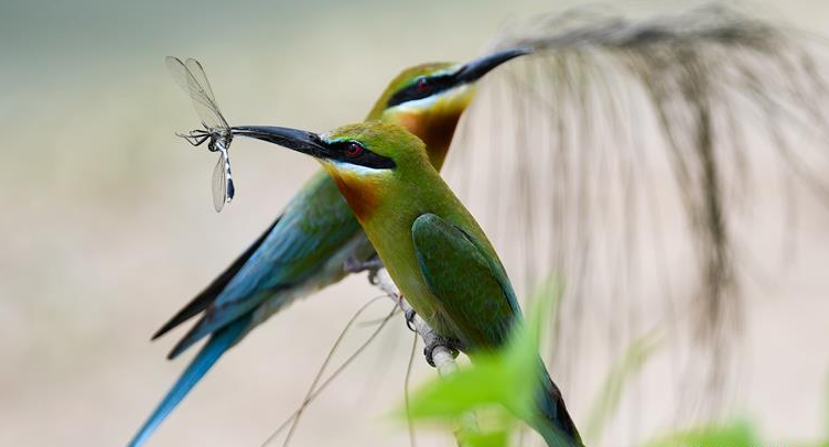 近日,不少栗喉蜂虎來到海南省??谑兄卜敝?,據(jù)??诋z榃濕地研究所工作人員統(tǒng)計,目前來到海口的栗喉蜂虎已有近200只。