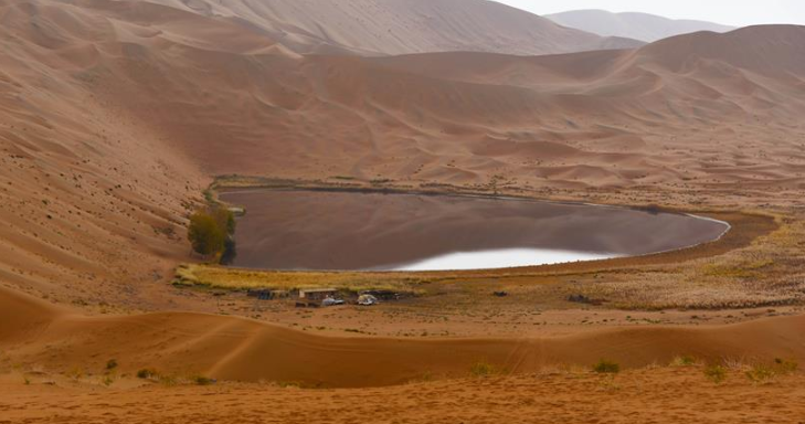 巴丹吉林沙漠位于內蒙古西部阿拉善盟,是中國第三大沙漠,沙丘起伏的曲線陡變成高聳的沙山,碧藍的湖泊散落在沙海間。