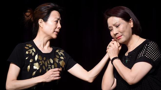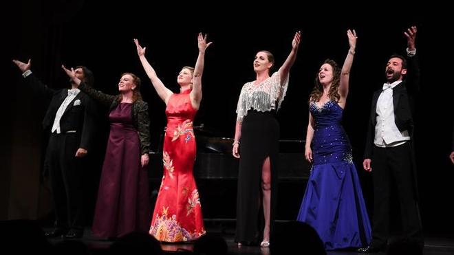 6月30日,在美國加利福尼亞州舊金山赫伯斯特劇院,歌唱家摩根·哈林頓(左)和安德烈亞·扎烏帕演唱《白毛女》選段《扎紅頭繩》。