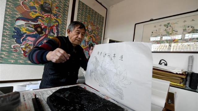 臨近春節(jié),作為國家級非物質文化遺產(chǎn)楊柳青年畫的代表性傳承人霍慶順在天津玉成號畫莊忙碌著趕制年畫。