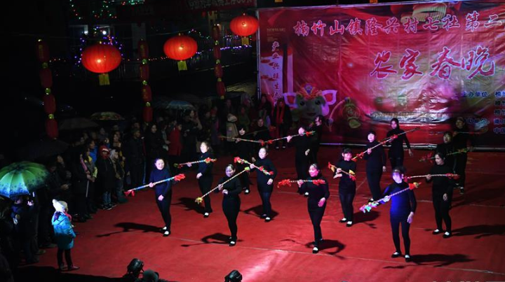 1月31日,隆興村七社村民在“農家春晚”上表演打蓮簫。 當日,重慶市南川區(qū)楠竹山鎮(zhèn)隆興村七社舉辦“農家春晚”。
