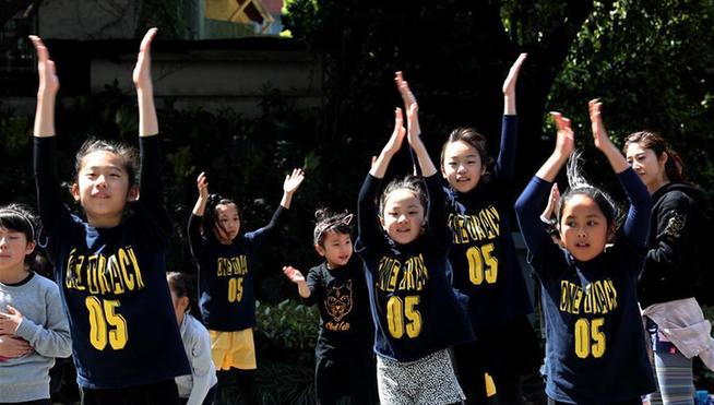 武漢江漢路步行街上,兩名年輕女性用外套遮擋火辣的陽光。當(dāng)日,武漢主城區(qū)最高氣溫已達30攝氏度。