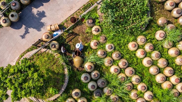 “赤水曬醋”采用固體發(fā)酵繁殖產(chǎn)生天然醋酸菌,醋醅和成品醋都在日光下曝曬而成,故稱曬醋?!俺嗨畷翊住敝谱鳉v史悠久,工序考究,2009年被列入貴州省級非遺名錄。