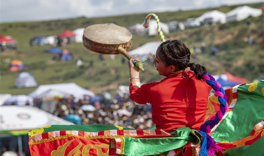 眾多演員同臺(tái)獻(xiàn)藝,表演國(guó)家級(jí)非物質(zhì)文化遺產(chǎn)弦子舞,吸引西藏各地的群眾前來(lái)觀看。