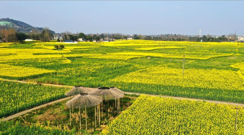 初春時(shí)節(jié),正值農(nóng)時(shí)。成都平原西部的大邑、崇州等縣市油菜長勢良好,一片生機(jī)盎然的景象。