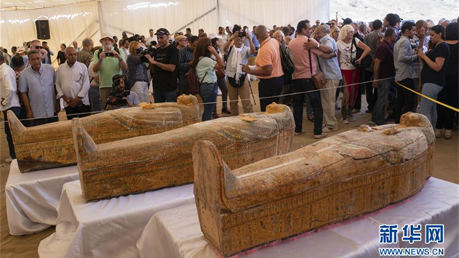 埃及文物部19日在南部城市盧克索舉行的新聞發(fā)布會上宣布,埃及考古隊近期發(fā)掘出30具3000年前的木質棺槨。