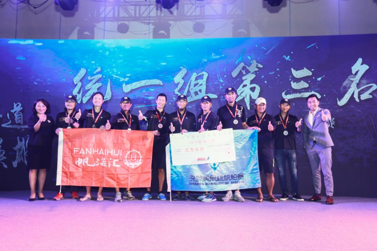 “京東體育”獨(dú)立船隊(duì)冠名的深圳帆海匯美周杯帆船隊(duì)獲得統(tǒng)一組第三名