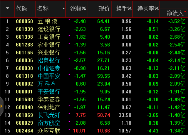 科技股獲得資金青睞,金融、消費(fèi)資金流出明顯。