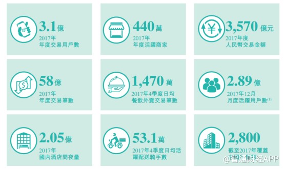 智通財經(jīng)APP觀察到,2017年美團交易額達到3570億元,同時公司還擁有3.1億年交易用戶以及440萬活躍商家。此外,2017年公司MAU數(shù)據(jù)已達2.89億。