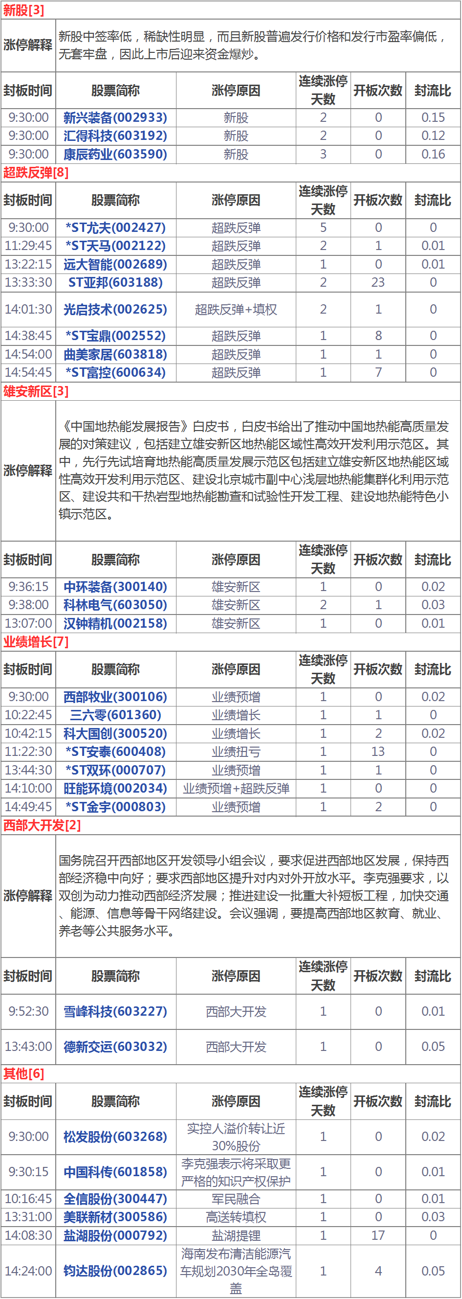今天漲停家數(shù)較上一交易日有所減少,兩市29家漲停;跌停8家。成交量方面,滬市成交1012億元,深市成交1451億元,兩市總成交額約為2463億元,較上一交易日縮量451億元。盤面上,知識產(chǎn)權(quán)保護(hù)、養(yǎng)殖業(yè)、網(wǎng)絡(luò)安全等板塊漲幅居前;鈦白粉、高送轉(zhuǎn)、稀土永磁等板塊跌幅居前。