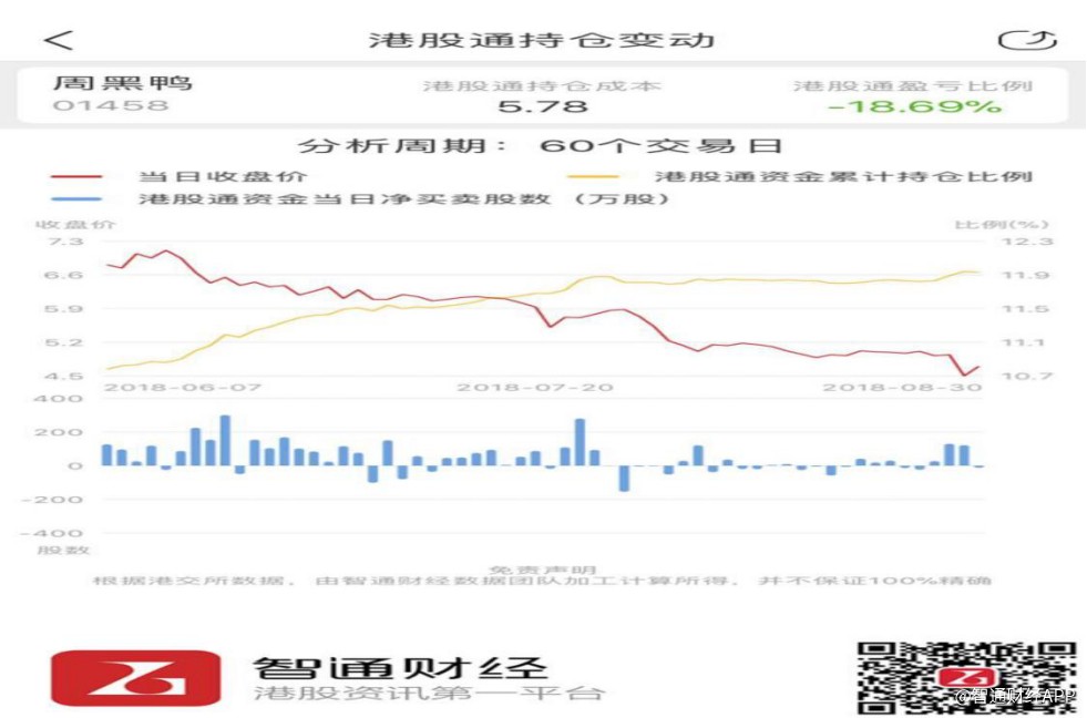 不僅如此,根據(jù)智通財(cái)經(jīng)APP的數(shù)據(jù),近三個月以來內(nèi)地資金持續(xù)通過港股通渠道加倉周黑鴨,與公司股價下行趨勢形成明顯的背離。