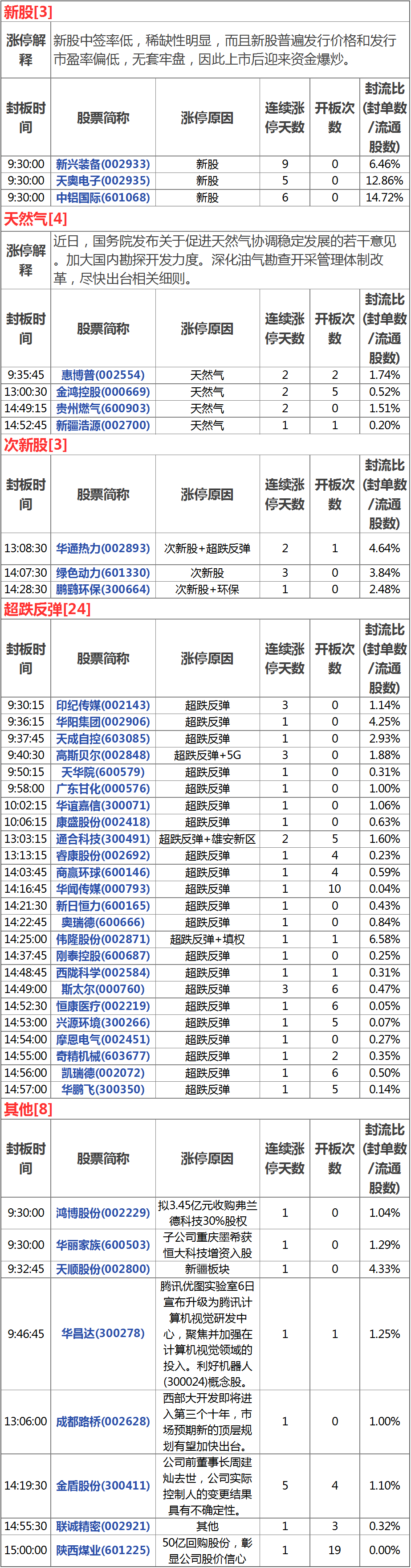今天漲停家數(shù)較上一交易日有所增加,兩市共42家漲停;跌停6家。成交量方面,滬市成交1138億元,深市成交1582億元,兩市總成交額約為2720億元,較上一交易日放量224億。盤面上燃氣水務、黃金、煤炭等板塊漲幅前;電子發(fā)票、國產軟件、芯片等板塊跌幅居前。