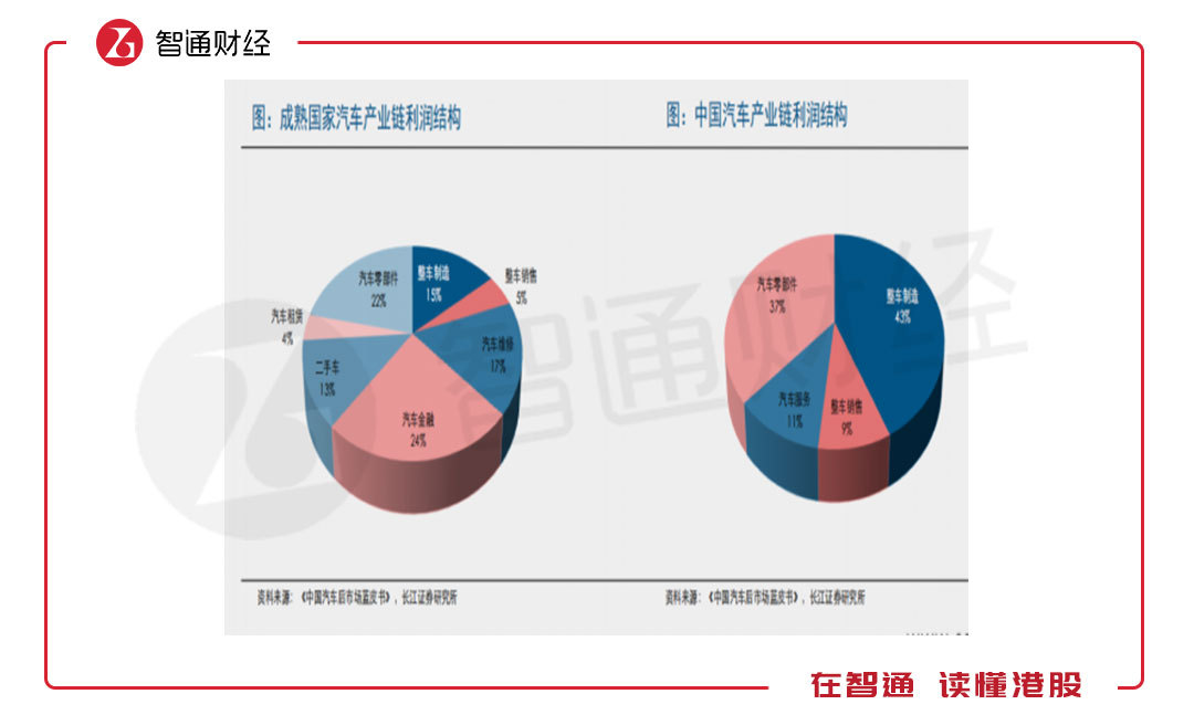 實(shí)際上,整個(gè)產(chǎn)業(yè)鏈各部分成長(zhǎng)及盈利水平不一樣,未來利潤(rùn)結(jié)構(gòu)變化也會(huì)不一樣。不過根據(jù)發(fā)達(dá)國家的成長(zhǎng)路徑,整車及零部件肯定是要讓利給下游的,特別是輔助銷售環(huán)節(jié)的汽車租賃及汽車金融板塊。