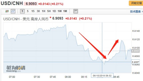 智通財經APP獲悉,離岸人民幣兌美元亞市早盤一度跌逾200點,報6.9155,后短線快速拉升約50點。截至發(fā)稿,報6.9093,跌143點子,跌幅0.21%。