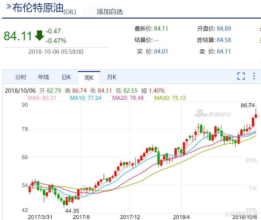 油價漲勢仍在持續(xù)。10月3日,布倫特原油盤中突破85美元/桶關(guān)口,創(chuàng)下近四年新高,這已是布倫特油價連續(xù)第5個季度上漲,是2007年初以來最長的一個上漲周期。