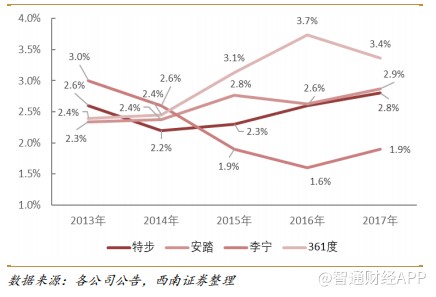 其邏輯之一是,特步在2015年開啟變革之后,從品牌定位、產(chǎn)品、渠道、運營四方面進行了全方位變革,公司從一家產(chǎn)品公司轉(zhuǎn)型為一家品牌公司。2017年末,公司用1.2億元一次性回購2015年前生產(chǎn)的產(chǎn)品,徹底清除歷史包袱,為業(yè)績反轉(zhuǎn)奠定基礎(chǔ)。