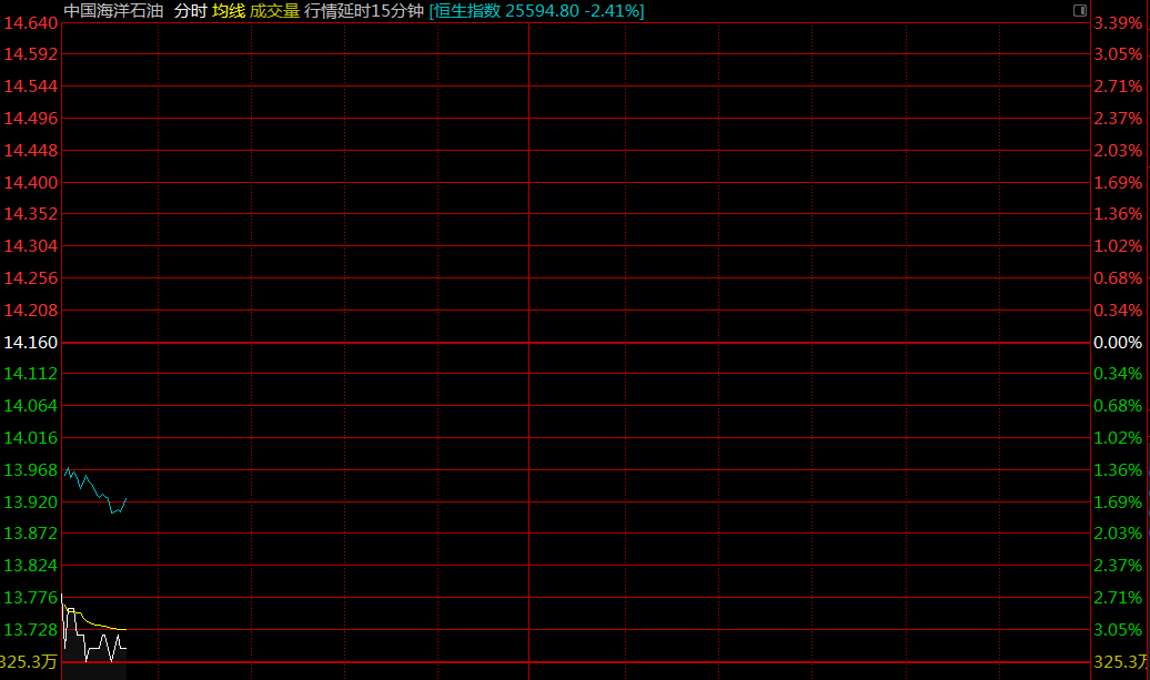 智通財(cái)經(jīng)APP獲悉,受國(guó)際原油價(jià)格影響,“三桶油”集體下挫,截至10時(shí)33分,中海油(00883)跌3.67%,報(bào)價(jià)13.64港元,中石油(00857)跌2.64%,報(bào)5.89港元,中石化(00386)跌2.2%,報(bào)6.66港元。(王岳川)