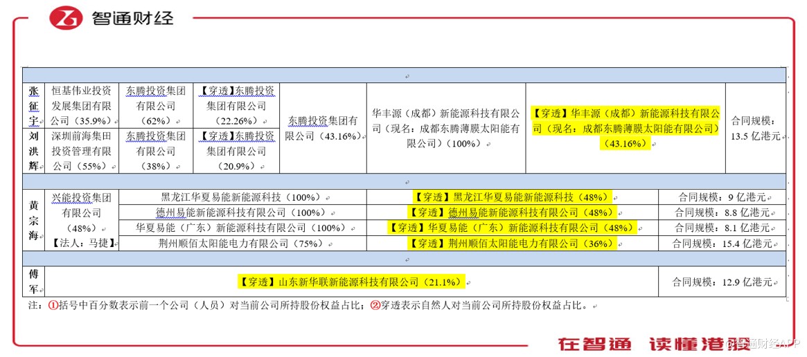 其它四個公司,經(jīng)過股權(quán)穿透后,發(fā)現(xiàn)控股公司為興能投資集團(tuán)有限公司(興能投資),實際受益人為黃宗海,不過興能投資的法人馬捷曾在漢能薄膜中擔(dān)任高管。