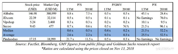 拼多多截至2018年第二季度的12個(gè)月市銷(xiāo)率為21.7倍,是行業(yè)巨頭阿里巴巴(8.8倍)的兩倍有余,也是京東(0.5倍)等更成熟的中國(guó)電子商務(wù)企業(yè)的44倍之多。京東的大部分收入來(lái)自直銷(xiāo),而非商家服務(wù),因此這種對(duì)比并不完美,但這只是一個(gè)例證。若按照2018年的市盈率計(jì)算,與阿里巴巴和其他中國(guó)電子商務(wù)公司相比,拼多多的股價(jià)仍然顯得非常昂貴(11.5倍)。