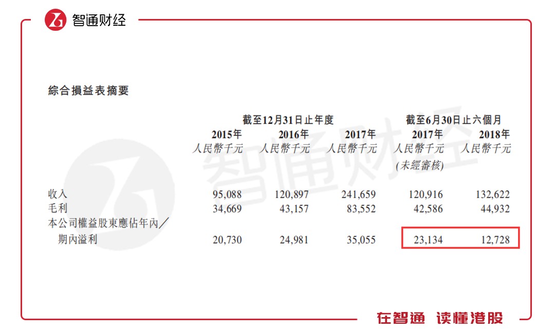 業(yè)績(jī)方面,招股書(shū)顯示,公司2015-2017年的收入分別約為9510萬(wàn)元(人民幣,下同)、1.21億元及2.42億元,同期公司凈利潤(rùn)分別約為2070萬(wàn)元、2500萬(wàn)元及3506萬(wàn)元。2018年上半年,公司收入為1.33億,同比增長(zhǎng)10%,凈利潤(rùn)為1273萬(wàn),同比下降45%。凈利率由于2017年上半年的14.5%,降低至9.6%。