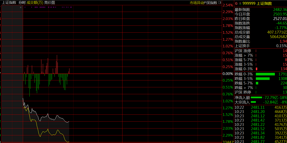 受美股加速下跌影響,12月25日,兩市大幅低開,滬指開盤報2503.95點,跌0.91%。深成指開盤報7308.61點,跌1.14%。創(chuàng)業(yè)板開盤報1269.14點,跌1.18%。