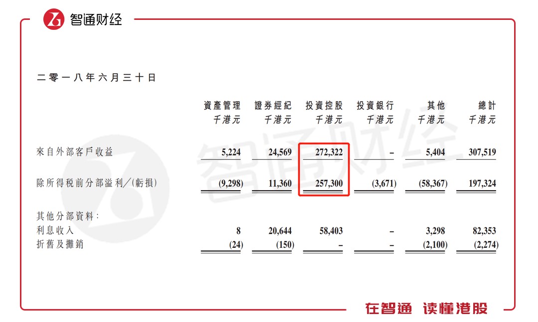 2018年上半年,中民金融實現(xiàn)股東應(yīng)占溢利約1.76億港元,同比增長53%,該利潤已相當于2017年全年業(yè)績的92%。從2018年上半年分布業(yè)績來看,其稅前溢利主要來自投資控股部分,期內(nèi)投資控股分部的稅前溢利約為2.57億港元,2017年同期為約1.63億港元。