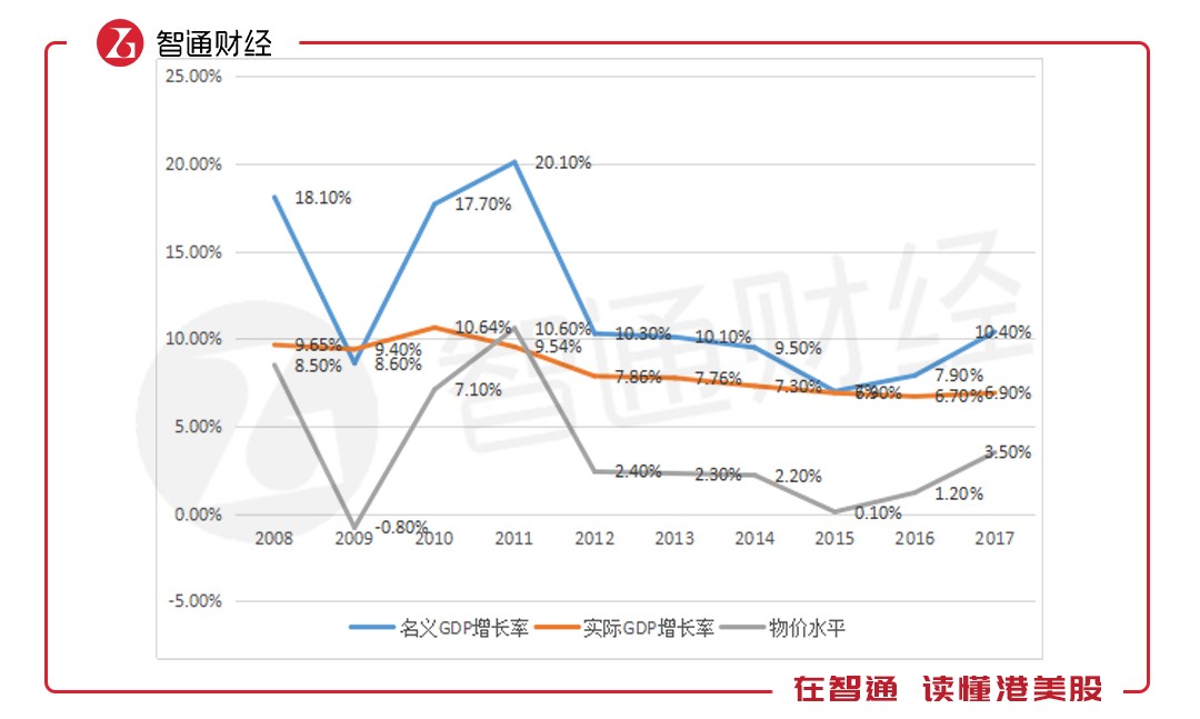 但考慮到物價(jià)水平的變化,此時(shí)農(nóng)村的消費(fèi)水平并不能代表購買力水平,智通財(cái)經(jīng)APP以實(shí)際GDP增長(zhǎng)水平和名義GDP增長(zhǎng)水平測(cè)算每一年的物價(jià)水平(物價(jià)水平=名義GDP增長(zhǎng)水平-實(shí)際GDP增長(zhǎng)水平),以下為測(cè)算圖表: