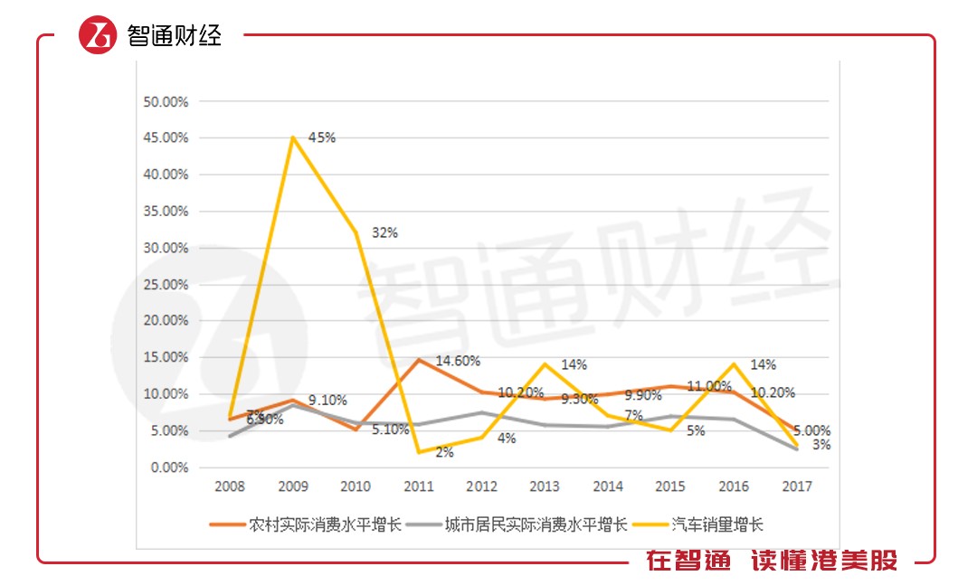 智通財(cái)經(jīng)APP了解到,2008年載客汽車保有量是3850.26萬輛,2009年為4840.81萬輛,同比增長(zhǎng)32%,而透過統(tǒng)計(jì)局官網(wǎng)得知,2008年城市每百戶家庭汽車擁有量為8.8輛,2009年為10.9輛,增長(zhǎng)了24%,2009年城市人口為64512人,增長(zhǎng)3.4%。城市的數(shù)據(jù)均低于行業(yè)的數(shù)據(jù),說明農(nóng)村市場(chǎng)確實(shí)起到了作用。