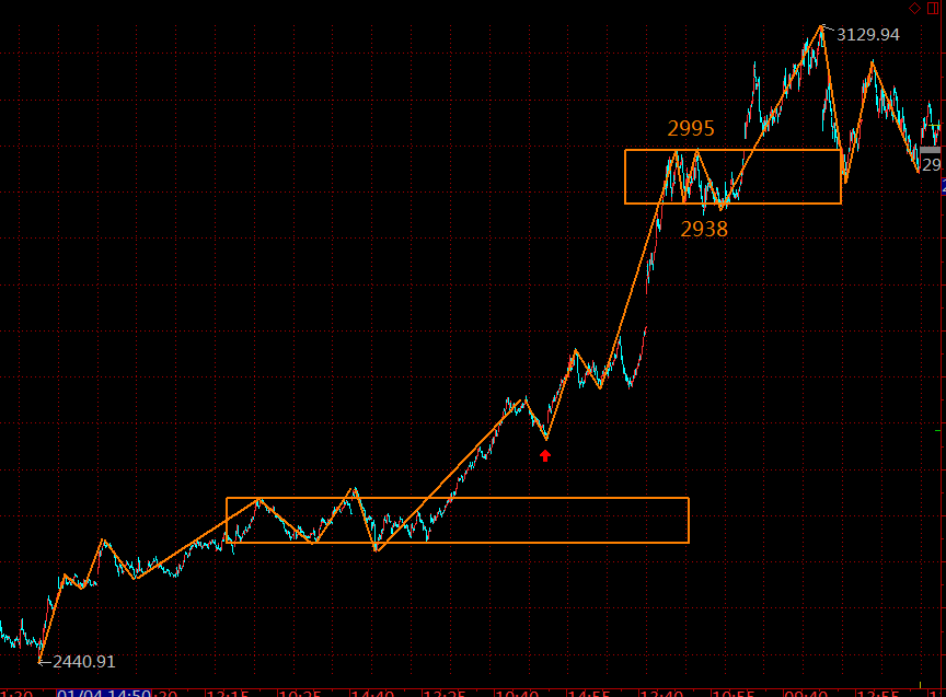 滬指最終選擇了在這個位置進行級別擴張,這里正式進入30分鐘級別的盤整走勢,那么2938點顯得非常關(guān)鍵,跌破該位置后,反抽若不能重新站上去,將繼續(xù)往下擴大調(diào)整空間。