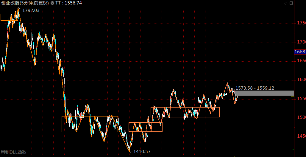 創(chuàng)業(yè)板這里仍然走的較為強勢,需要關(guān)注1530點的支撐,只要不跌回下方的三十分鐘中樞,都可視作是在構(gòu)建第三類買點。結(jié)合滬指的情況來說,這里盤整背馳的概率更大,預期在下周初反彈后,創(chuàng)業(yè)板指數(shù)將會跌回三十分鐘中樞區(qū)間。