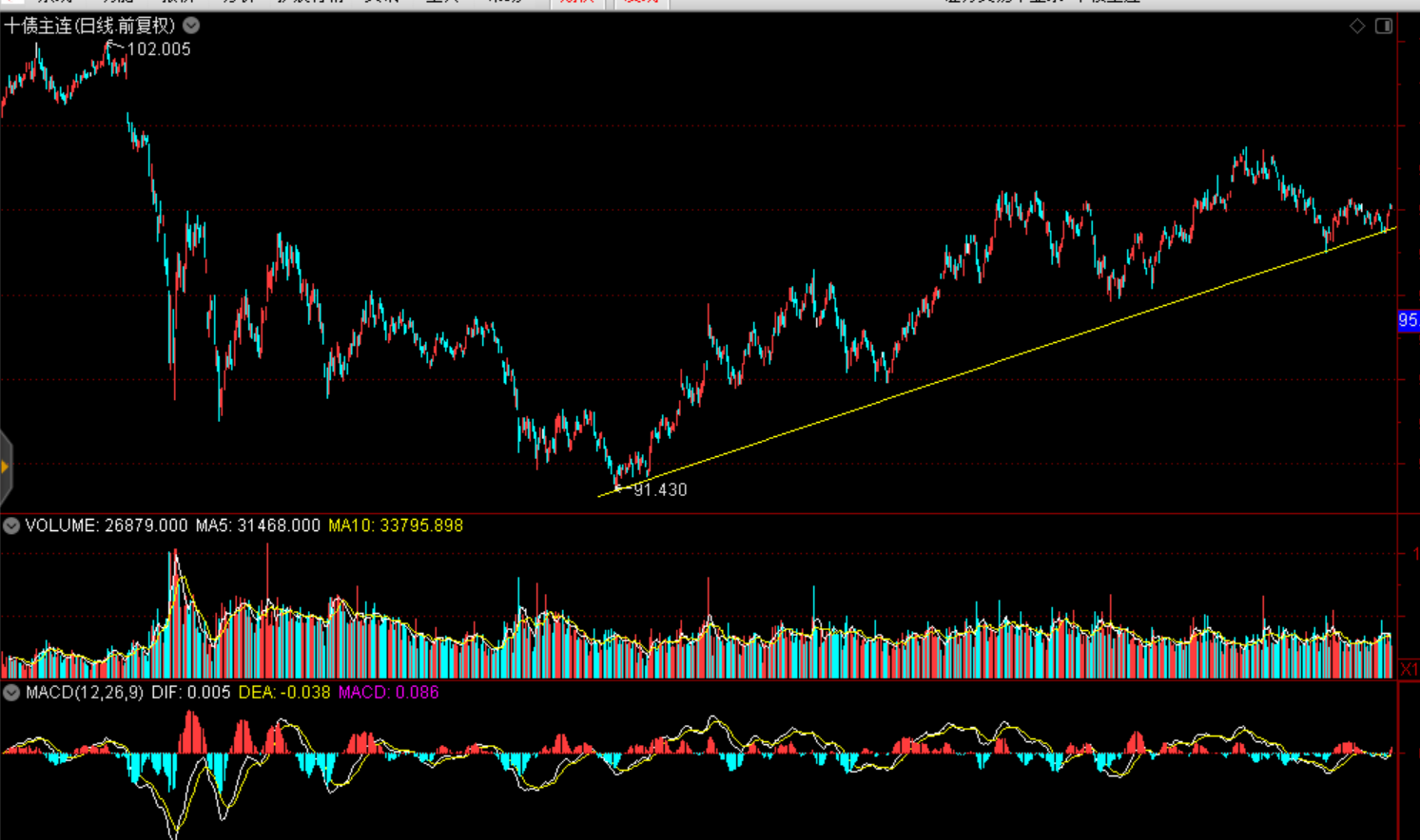10年期國債期貨延續(xù)反彈態(tài)勢:(與A股存在較為明顯的蹺蹺板效應)