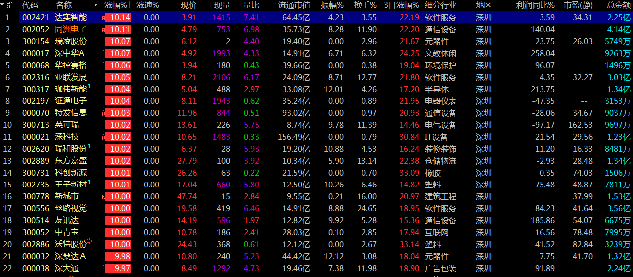 69股漲停 深圳本地股集體雄起
