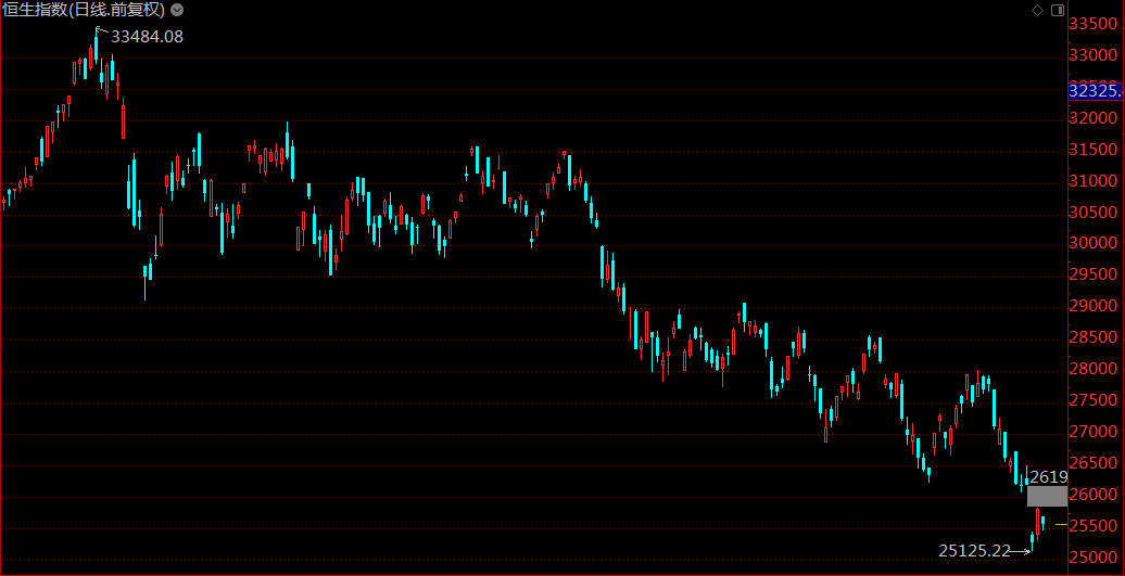 10月15日,恒生指數夜期(10月)收市25478點,漲132點或0.521%,高水33點。