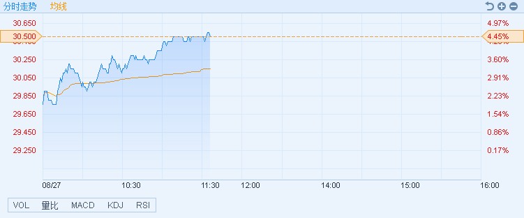 招商銀行(03968)上周五(8月24日)公布中期業(yè)績,股東應(yīng)占凈利同比增14%至447.56億元人民幣,截至11時35分,漲4.45%,報價30.5港元,成交額5.78億。