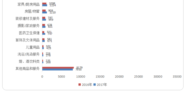 2017年,商品和服務(wù)二十五大類投訴中,互聯(lián)網(wǎng)及通信行業(yè)服務(wù)、公共設(shè)施服務(wù)、通訊電腦數(shù)碼投訴量居前三位,均超過1萬宗,分別占投訴總量的29.65%、19.02%和9.92%。