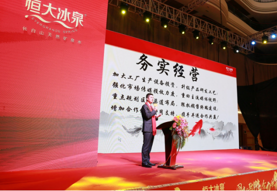 恒大農牧集團總裁王宇豐在開幕致辭中表示:“未來恒大冰泉堅持長白山一處水源的品質戰(zhàn)略不會變,堅持只做天然礦泉水的品類戰(zhàn)略不會變,堅持一瓶一碼健康溯源的品控標準不會變,堅持推動中國飲用水健康升級并擴展全球的企業(yè)戰(zhàn)略不會變!”