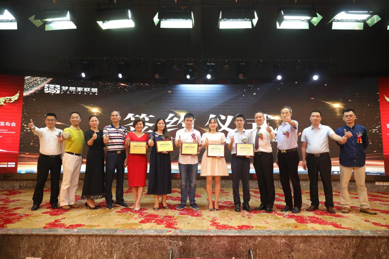 在接下來的授牌儀式中,夢(mèng)想家聯(lián)盟分別同深圳市沃爾核材股份有限公司、匯天控股智匯??萍加邢薰?、深圳云智方科技、佳得寶家居、善之泉環(huán)??萍己炗喠藨?zhàn)略合作協(xié)議并授牌。