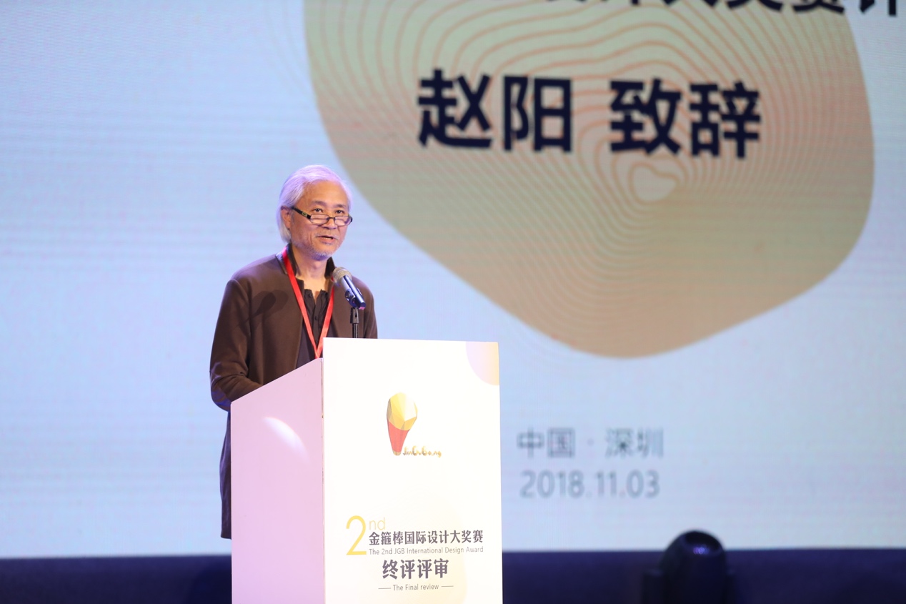 大賽主任評委、中國美術(shù)學(xué)院工業(yè)設(shè)計專業(yè)創(chuàng)始人及學(xué)科帶頭人趙陽教授也登臺致辭。趙陽教授回顧了與江陰、與金箍棒設(shè)計的淵源,高度贊揚了本屆大賽倡導(dǎo)質(zhì)樸生活、注重設(shè)計落地的理念,并預(yù)祝比賽成功。