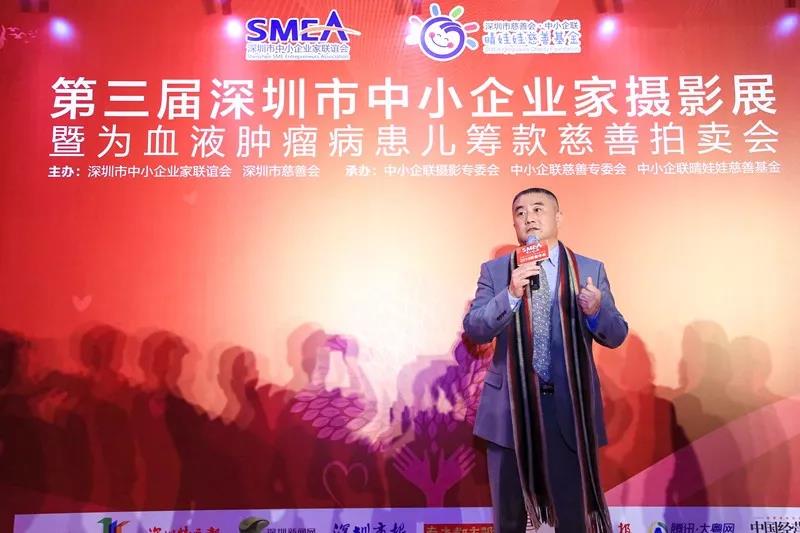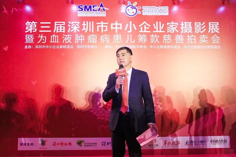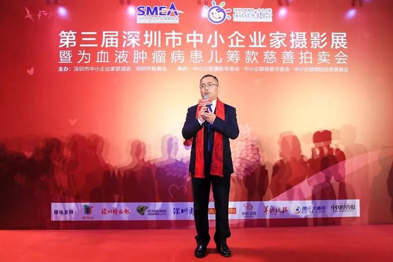 深圳中小企聯(lián)會長、銀盛集團(tuán)董事局主席林重成在開幕式上表示“攝影專委會是深圳市中小企業(yè)家聯(lián)誼會旗下成立的八大專委會之一,自2011年成立以來,特別是在劉徽主席的帶領(lǐng)下,開展了豐富多彩的攝影創(chuàng)作活動,創(chuàng)作了許許多多優(yōu)秀的攝影作品,摘獲了不少大獎。他希望中小企業(yè)家既要豐富我們的精神世界,也要積極的履行企業(yè)家的社會責(zé)任,讓優(yōu)秀的攝影作品為我們的精神和心靈帶來震撼,也要讓這種震撼轉(zhuǎn)換化對血液病患兒的關(guān)愛,轉(zhuǎn)化為對慈善事業(yè)的支持和關(guān)心。